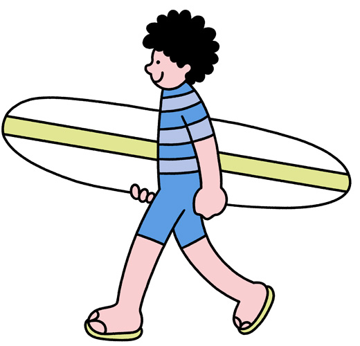 月曜の波乗りが欠かせないサーファー。ボーダー柄のウェットスーツがトレードマーク。