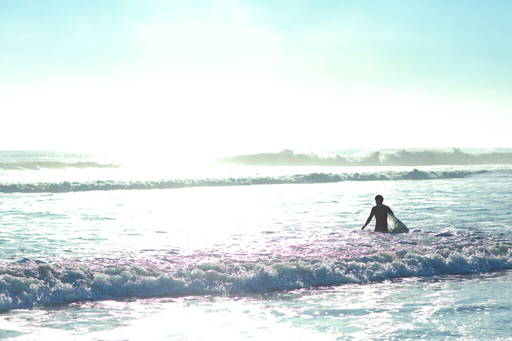 朝イチは仕事前のローカルサーファーで賑わう北泉。とはいえ、湘南や千葉の海と比べると、その数は圧倒的に少ない。トリップサーファーには嬉しい光景だが、地元の人に配慮するなら、その後の時間帯を狙いたい。「平日の昼間などは、かなり人が少ないですよ」。オープンな雰囲気漂う北泉海岸は、ショートボードからロングボード、SUPまでOK。波も十分にある。「近隣には駐車場が整備されていないサーフポイントもあるので、停める場所がわからなかったら地元のサーファーに聞いてみてください」。ルール&マナーを守りながら、楽しくサーフィン! ショートボーダーにも配慮して、みんなで北泉の波をシェアしよう。